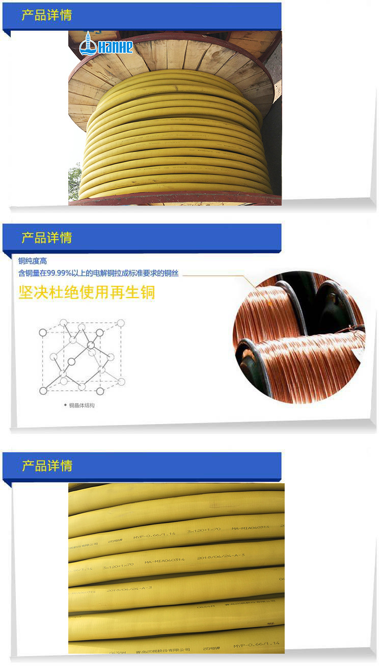 ● 工頻額定電壓U0/U為380/660V、660/1140V、1.9/3.3kv、3.6/6kv、6/10KV、8.7/10KV、300/500V。