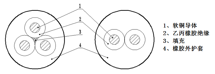 5.1通用橡套軟電纜結(jié)構(gòu)示意圖: